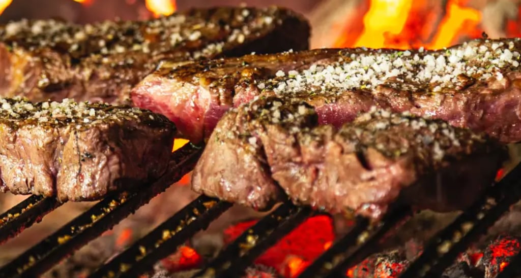 Asado a la brasa, acompañado de patatas fritas caseras.