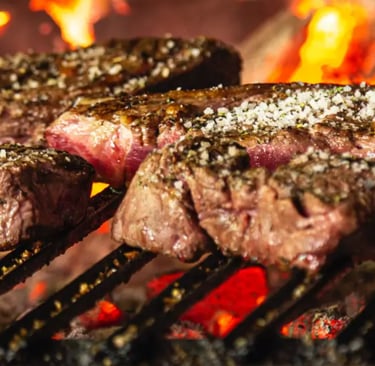 Corte selecto asado a la brasa, servido poco hecho sobre piedra caliente para que lo termines a tu gusto aderezado con escamas de sal.